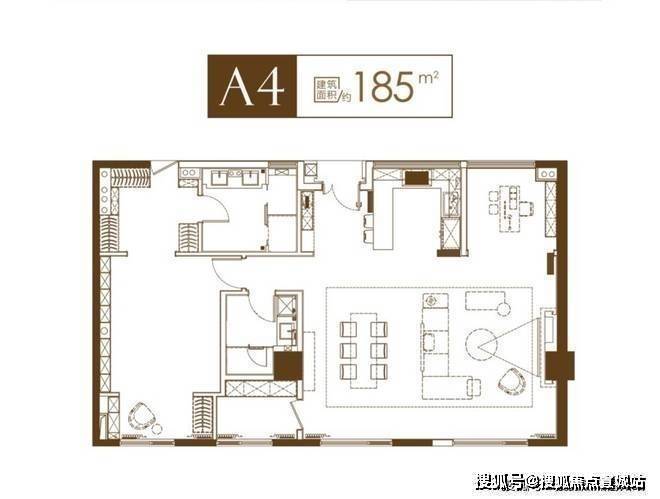 185平户型:空间布局合理,动静分区明显。客厅连接景观阳台,采光充足,视野开阔。卧室宽敞舒适,可满足一家三口或四口的居住需求。