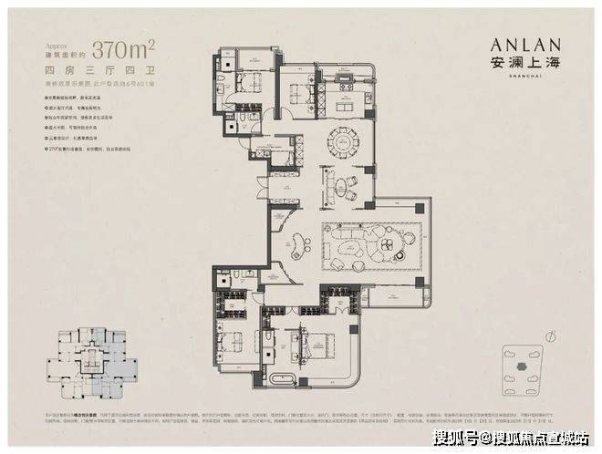 首先,不夸张的讲,✅✅安澜上海售楼处电话:400-8862-334✅✅建面约280㎡是我至今看过顶豪界最完美的四面宽全景舱户型。