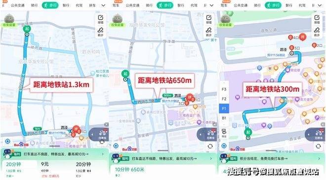 不同的距离步行到地铁站的差距有多少呢?来看百度地图的测距: