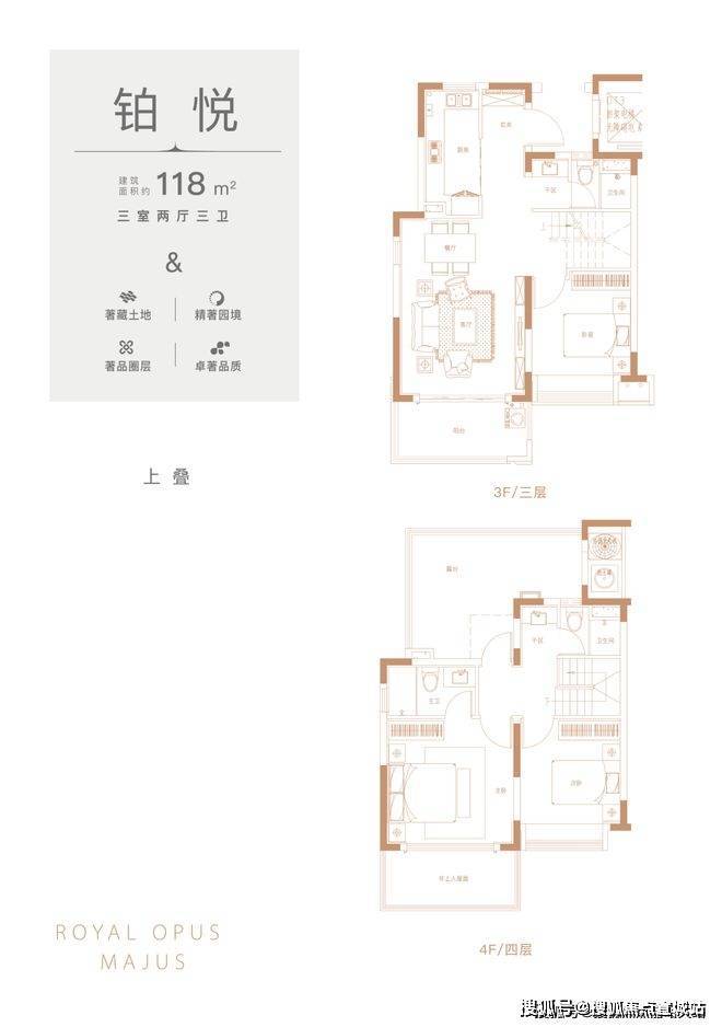 上叠:118(3室2厅3卫),150(4室2厅3卫),200(4室2厅4卫)
