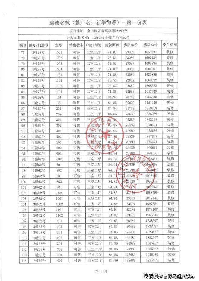 一房一价表如下: