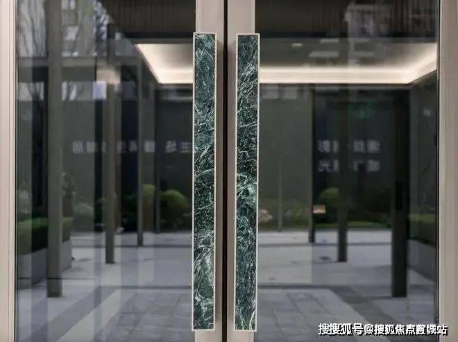 单元入口处的大花绿进口石材,坚硬细密的同时,外形美观,品质感极高。