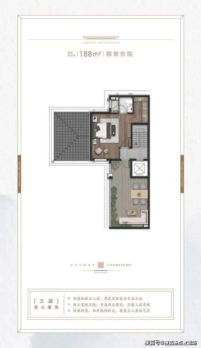 泰禾海上院子售楼处电话☎:400-882-8814(预约热线)✔✔✔二层至三层豪华套间,功能齐全,每一间卧室都拥有足够尺度,配置独立浴室、衣帽间等功能分区,房间外延景观露台,满足了高阶人物对于空间感的需求。即使二孩家庭成员也各有各的空间,互不影响。【建筑面积约188㎡颐景合院】