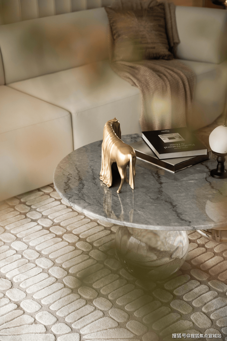 素色基调内,大理石所呈现的流水纹理,宛若岁月流金。弧形转角,消匿了内外空间的情感边界,柔软的线条在悄无声息中流淌在居家的细节中。