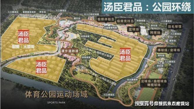 汤臣君品外围和中心,均被东郊体育公园所环抱.
