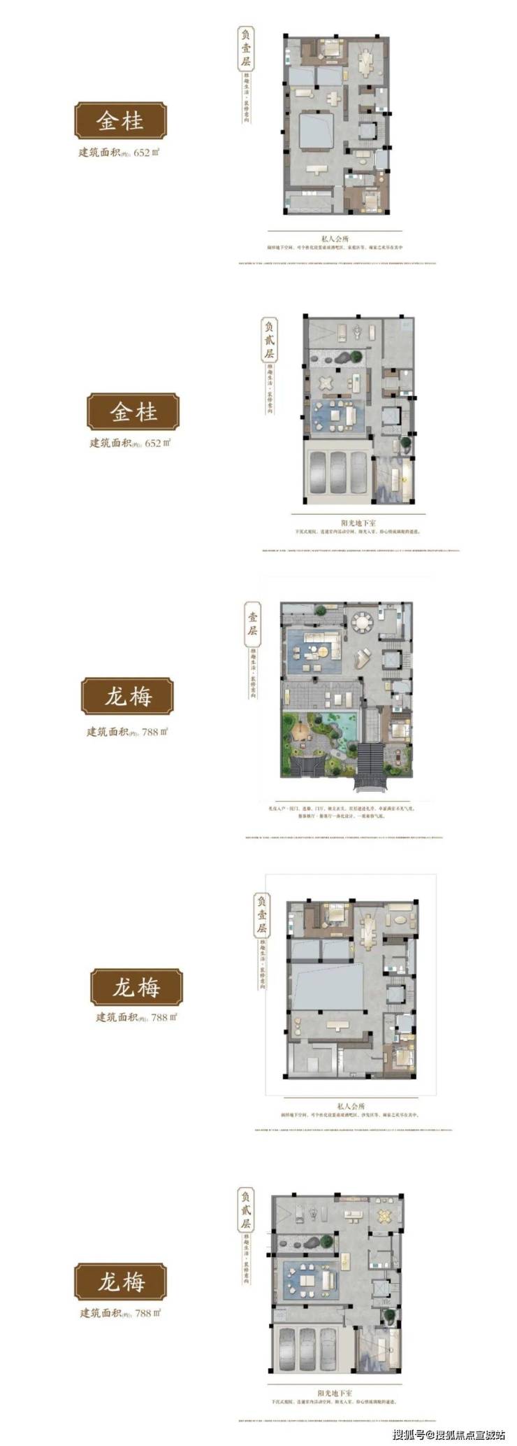 并且这整整两层全部都为赠送面积,每层皆有通风采光井,尤其是使用率较高的地下一层。一般设有南北两个采光井,使地下采光玻璃面大大增加,增加视觉通透感。