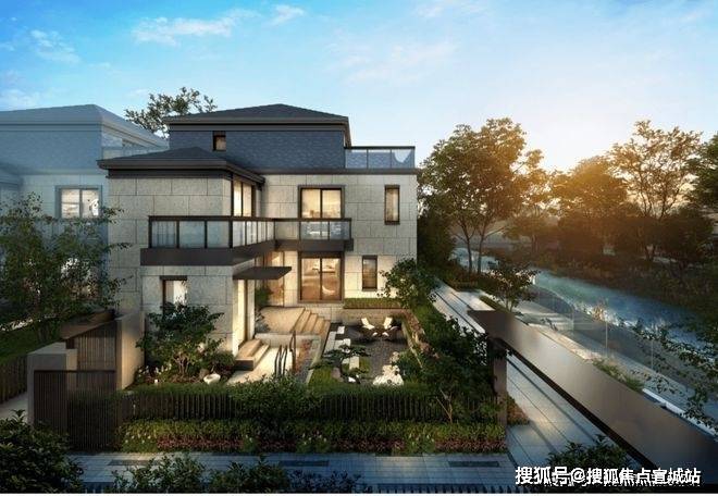【上实·和风院】建筑外观是新中式格调,以黑色面瓦为黛顶,整体线条简洁明快。