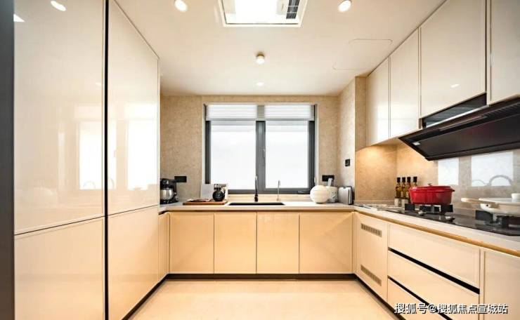 如三大件用的是华宅必备的全屋智能家居,日立两联供的中央空调、地暖,法国爱迪士的新风;厨房用的是博世四件套(燃气灶、吸油烟机、洗碗机、蒸烤一体机),2个东芝嵌入式冰箱,并额外配置3个拉篮;主卧还有日本皇家特供的伊奈智能马桶,沄璟主卫做了杜拉维特双台盆,再铺上威尼斯棕的台面,干净整洁的同时,也有美学视觉体验。