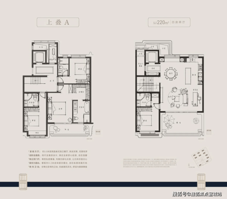 本项目主打户型面积约为210至280平方米,精心设计下叠与上叠首层,均配备南北独立入户门,地下室亦设有南北双向入户门厅及独立车位。上下叠巧妙规划,实现“无交集归家动线”,营造出仿佛无邻居打扰的私密空间。此外,上下叠均设有独立的层高6米的地下室,室内空间采用全套房设计,首层挑高约3.6米。无论是下叠还是上叠,均代表着当前市场产品力的巅峰之作。