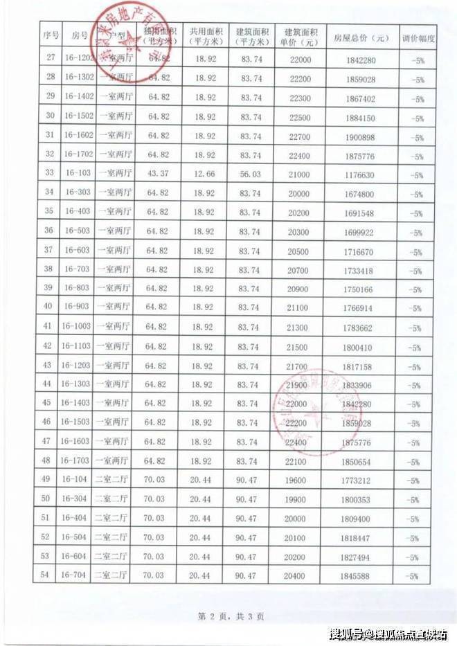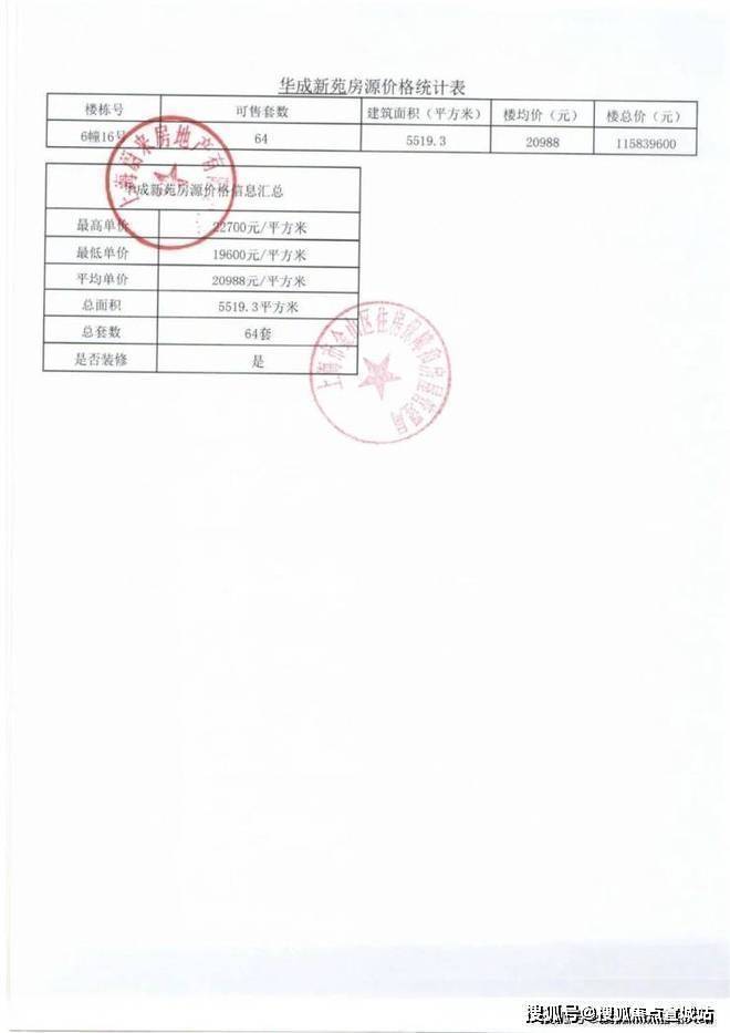 项目一房一价表