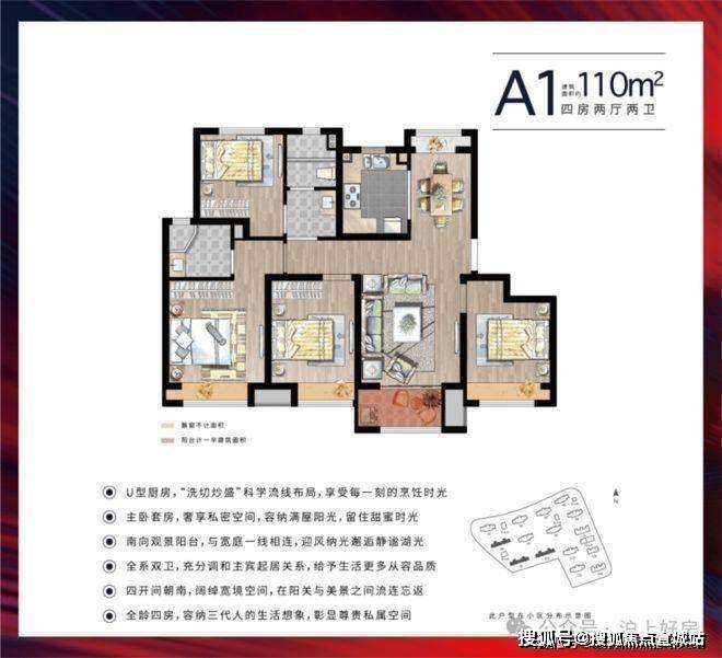 特点:四开间朝南,南向观景阳台。
