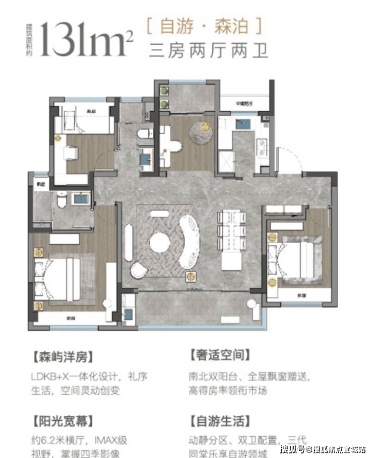 ·高得房率:约82%-84%洋房高得房率,空间使用最大化