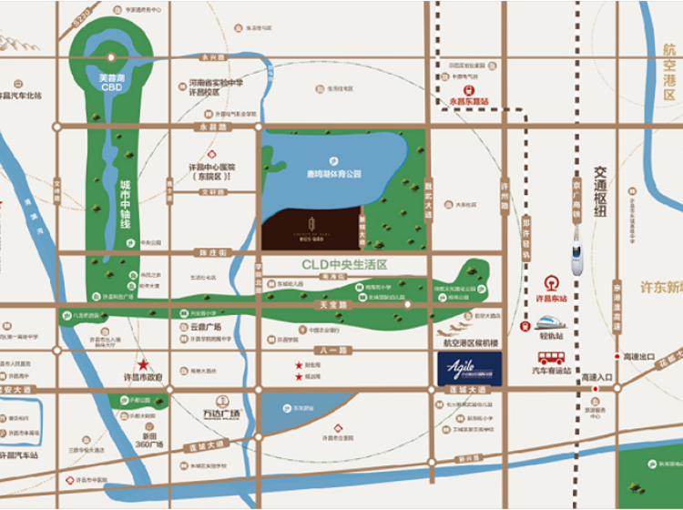 交通配套:许昌高铁东站、许昌客运总站、航空港区许昌候机楼以及学院北路、魏文路、陈庄街、永昌路、魏武大道
