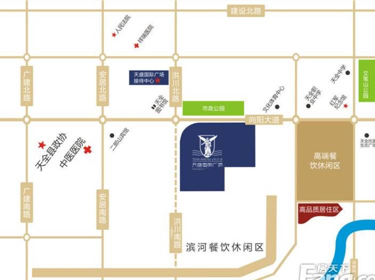 天盛国际广场作为天全首席城市综合体项目,目前天全仅有的城市综合体,项目配备的大型商业广场和三层商业楼,加之项目位于天全新老城区交汇处,未来将成为天全的商业中心。78-108㎡的幻变套一、套二、套三户型,均有较大赠送面积。