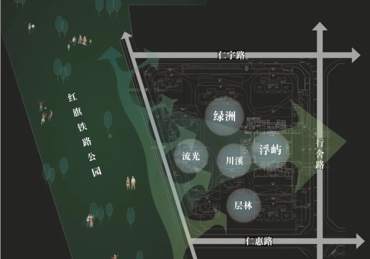 以围合式布局,“三园一生”的社区规划,外部红旗铁路公园、内部景观中庭、空中错落露台依次漫入眼底,让空间与自然对话,将生活藏于绿意深处。
