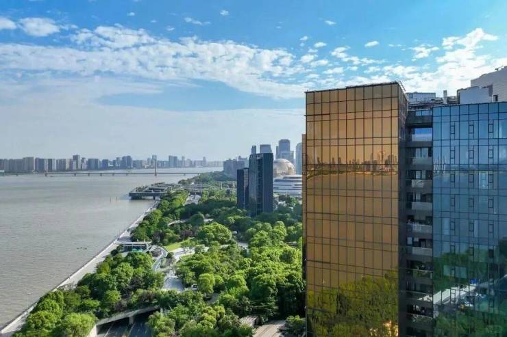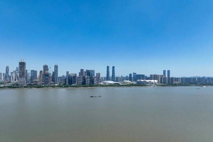 钱江新城南向瞰江最近项目,距江仅80米,揽一线钱塘江景,,最大约32米宽幅收藏精华江岸线,坐观270°超级环幕视野。