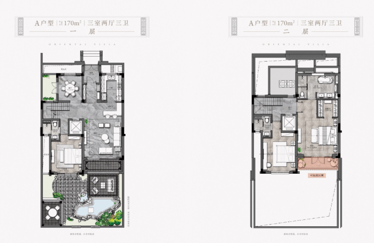 • 联合GOA大象设计公司(原绿城东方设计院的凌建先生的团队),通过降低建筑密度和容积率(容积率为0.614,建筑密度30%,以中式建筑中的江南民居形态创作出特有的两层合院产品)。