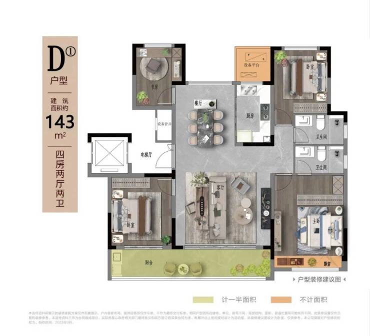 若是预算充裕,还可考虑选择127㎡四房两卫,甚至143㎡大户型,预留出未来家庭人口增长的居住空间,一步到位免去未来换房烦恼。