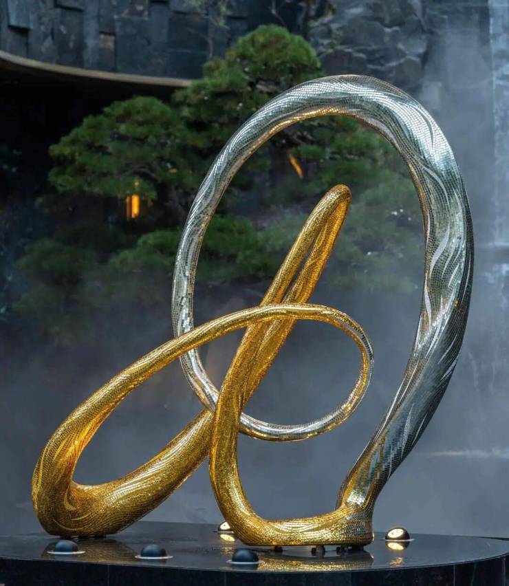 主入口,一座施华洛世奇中国应用中心定制的艺术雕塑立于门头之前,高贵大气可谓杭州独一份;600吨中国黑原石、18个工匠历时45天堆砌营造的罕见7米高的叠崖飞瀑,磅礴大气又不失灵动;全冠移植200万单棵的进口黑松及进口龙梅、羽毛枫、杜鹃球等臻稀植物,与飞瀑相生相融,诠释着自然与艺术的完美对话;地面、墙面、立柱都大面积铺装铂晶钻、普拉达绿、皇家白玉、安哥拉黑等进口奢石……在“量”的克制中,为业主打造极致“质”的高奢生活体验。