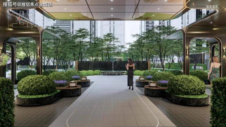 比如“原生围合社区”、风雨连廊,从高奢酒店中获得灵感的酒店式落客区、度假风园林,以及千万级住宅中都不多见的下沉式会所!