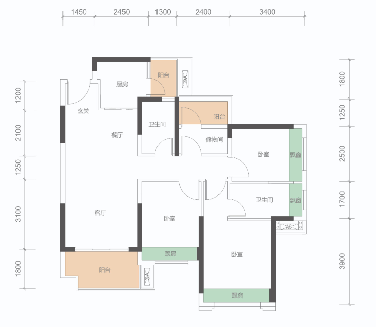户型设计实用,飘窗可以打掉增加使用面积,提高空间利用率。