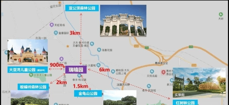 休闲配套:周边有大亚湾儿童主题乐园(建设中,直线距离项目约900m)、天然氧吧板嶂岭森林公园、亚公顶森林公园、红树林湿地公园、虎头山公园等资源。