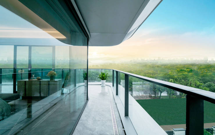 南向全落地玻璃营造轻透立面质感,消融建筑与自然的边界,采光与视野的双重升级,缔造时尚、前卫的风景视界。