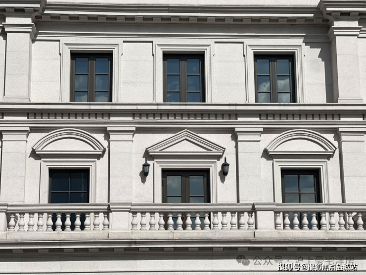 纯正法式风格,注重庄严、厚重、尊贵的仪式感。外墙上腰线、檐口线、门窗边线等选用精美雕刻和浮雕,植物、人物或神话故事的图案,远看庄重华贵,近看细节耐人寻味。增加了建筑的层次感、精致感和艺术感。