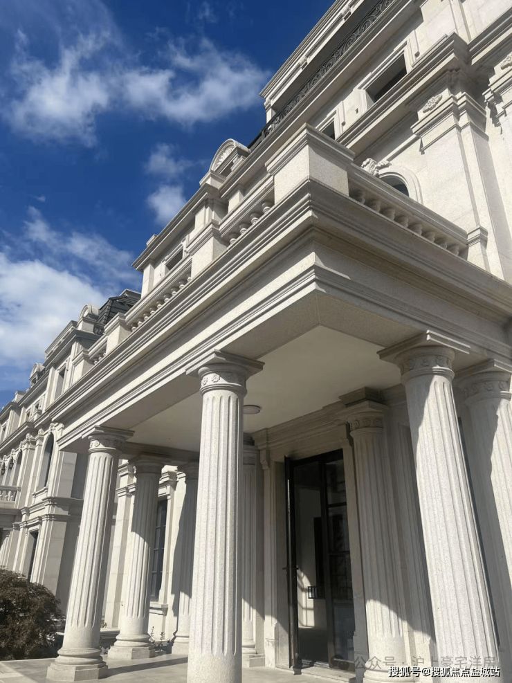 每一块石材的精挑细选,每一处拼接的严丝合缝,都展现出工匠们的精湛技艺与极致追求。踏入别墅,最先映入眼帘的便是那宏伟庄重的大门和精致华美的门廊,采用入户台阶、圆柱、扶壁柱和装饰线条等元素相结合打造出尊贵的入户体验,立柱挺拔而立,给人以庄重和迎宾的感觉。门廊的灯光设计选取古典精美的壁灯,夜晚踏上门廊仿佛置身于宫殿之中,营造出一种温暖而庄重的氛围。