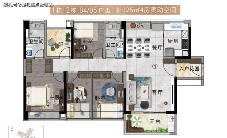 建面约125㎡单位,多开间朝南+南北对流设计,能容纳足够多的朝阳、和风。