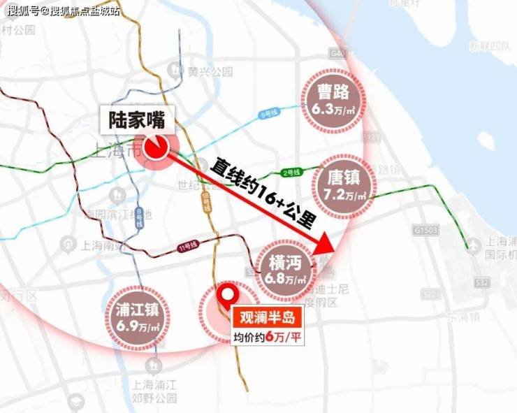 以陆家嘴为圆心,半径16+公里沿线通地铁板块的房价格局,唐镇、橫沔、浦江镇百平米3房总价都在700万左右,配套能级相对落户的曹路联动价也要6.3万/㎡。
