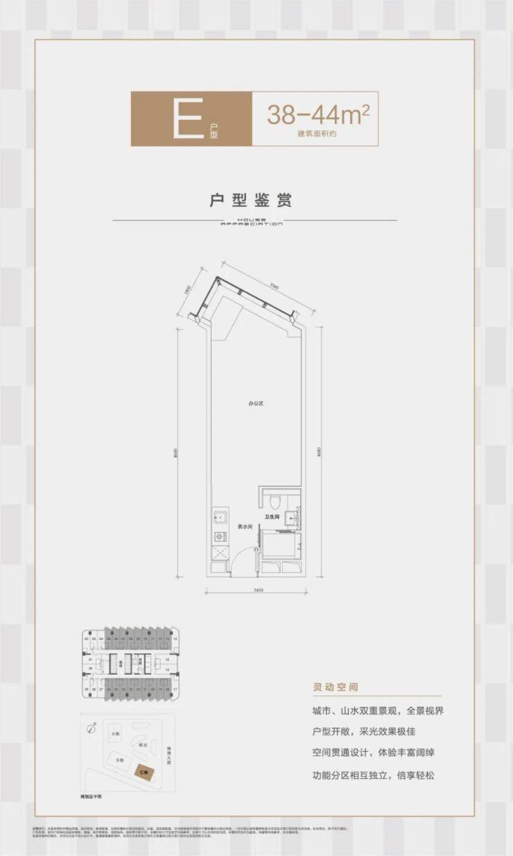 •金诚中心·天峯T1:约200米天际办公空间,共43层,建面约84457㎡