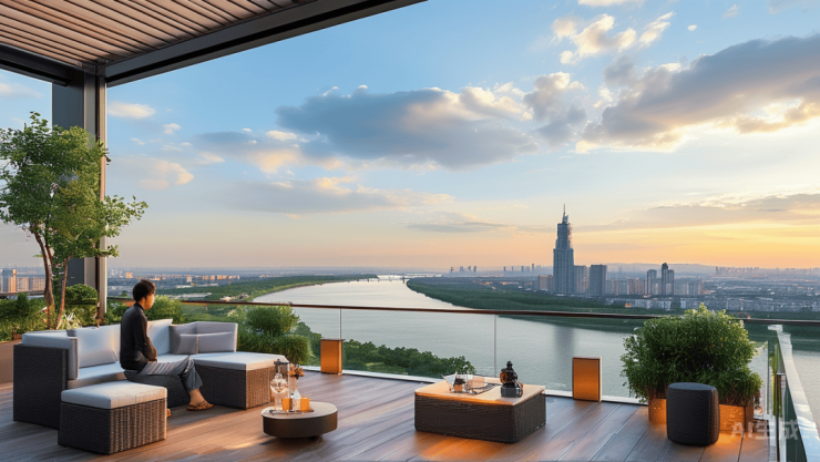 建面约132-195㎡:地上三层+地下空间,部分户型带庭院或露台。195㎡边套更拥有180°河景视野,堪称“塔尖人士的私人会客厅”。