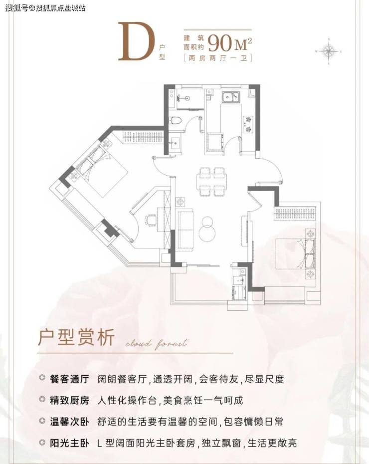 D户型 建面约90㎡2房