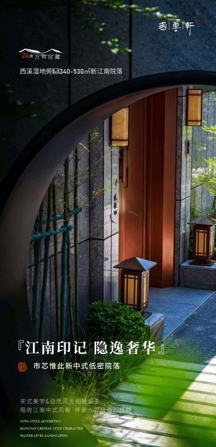 涵云轩坐落在杭州西湖区,中式风格别墅项目,面积达340-530㎡,融合了新江南院落的设计理念。项目背靠着西溪湿地,面朝着西湖山水,仿佛是一个御景园林,将自然之美尽收眼底。这样一个地处杭城封面级双景区的地方,近在咫尺,让人不禁心动
