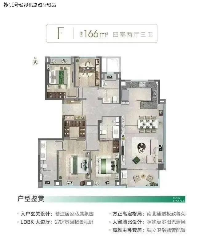 建面约166㎡四房户型图▼