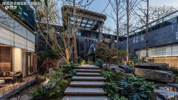 更具创新的是绿城把一个高差近6米的立体山水庭院搬进了住区!