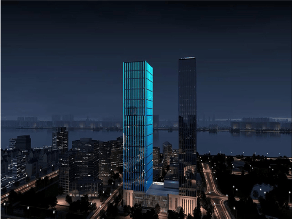 总建筑面积约12万方,地上约10万方地下约2万方,共44层,整座大楼高200米,大楼由德国STI思图意象建筑设计,室内装修更是聘请了美国BLD公司设计。