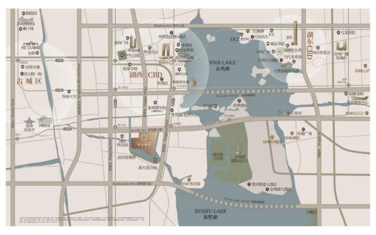 坐揽金鸡湖与独墅湖城市地标、商业旗舰、城市公园、五星级酒店、文化剧院等繁华盛景,苏州中心、东方之门、中环广场等地标配套环湖而立,奢享开放包容的国际滨水生活圈。