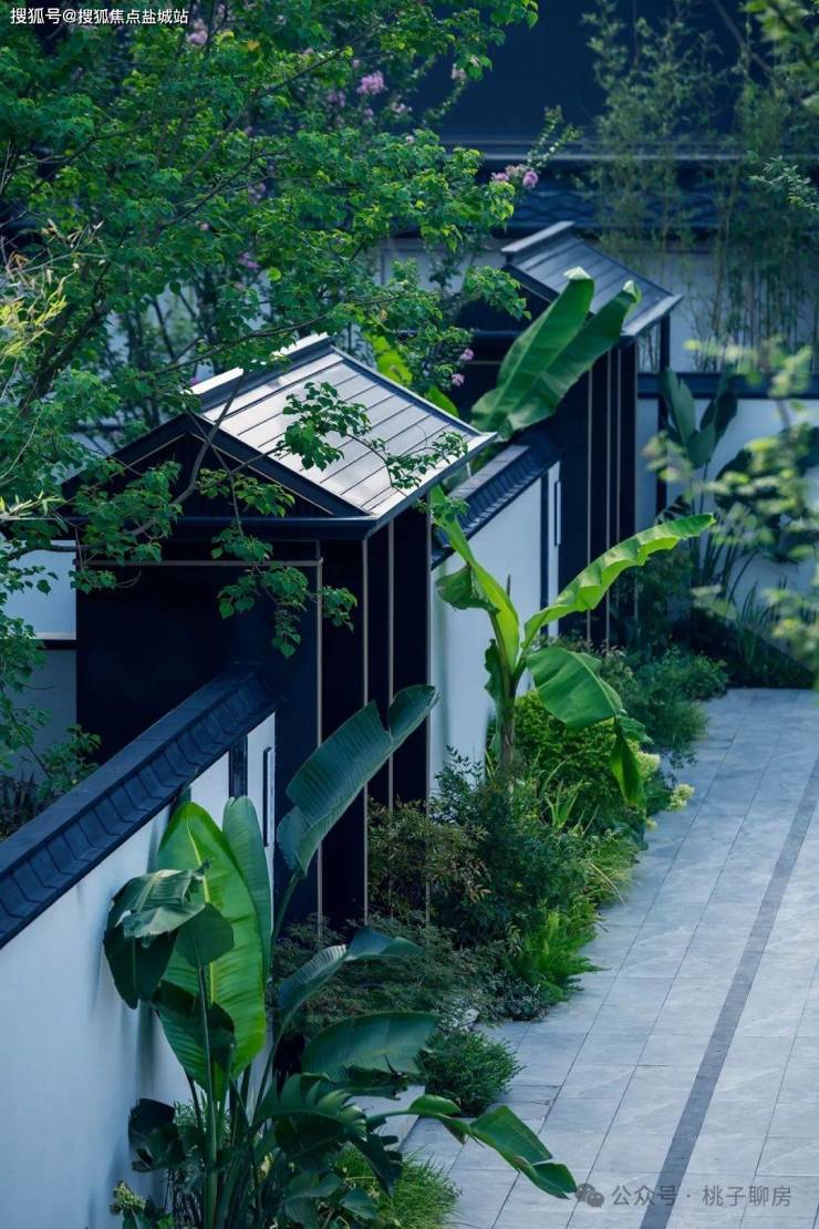 蓝城精研宋代建筑美学,,撷取经典歇山顶、悬鱼、鱼鳞瓦、垂花柱、挂落等宋式建筑语言,融合现代人居,于诗意山水间,全方位筑造当代优雅山水栖居。