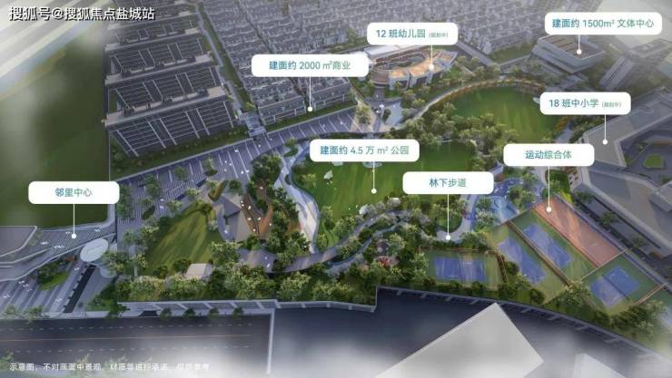 整个项目由两宗地块组成,占地约425亩,总建筑面积约48万㎡。是一座涵盖约4.5万㎡公园、幼儿园、九年一贯制学校、文体中心、邻里中心等复合业态的超大“公园城市”。