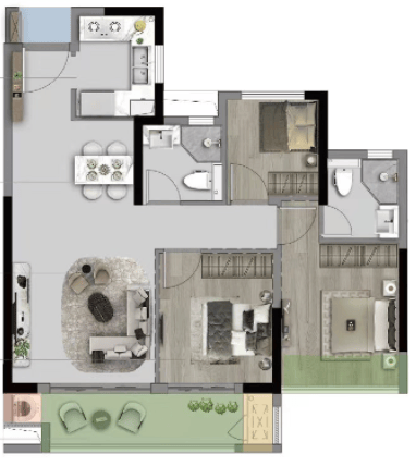 阔景大阳台:南向双开间大阳台,桶跨客厅和次卧悦享四季生活的惬意