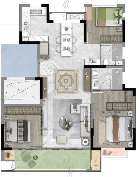 巨幕连景阳台:双开间大面宽设计,延展空间维度;满足休闲观景家政多种需求