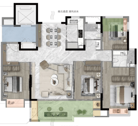四叶草格局:南北通透,无过道设计,空间利用率更高