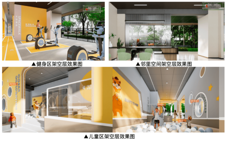 社区首层全架空(除部分配套用房),3.7-4.0m超越性层高结合景观和邻里社交,室内室外空间充分融合,在架空层设置了营造度假赏游的体验。