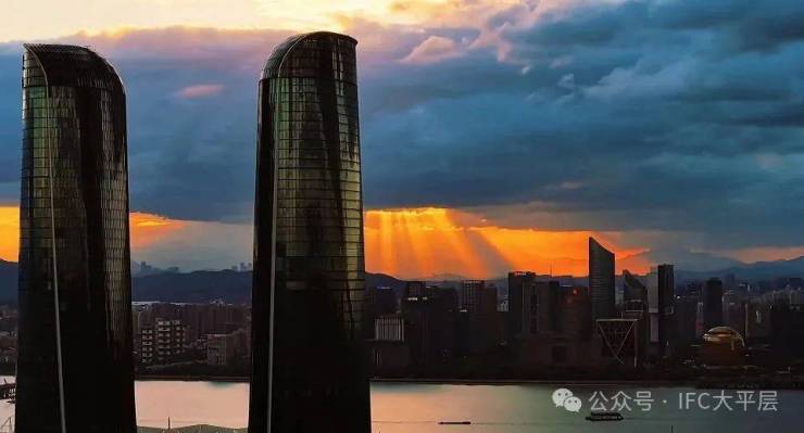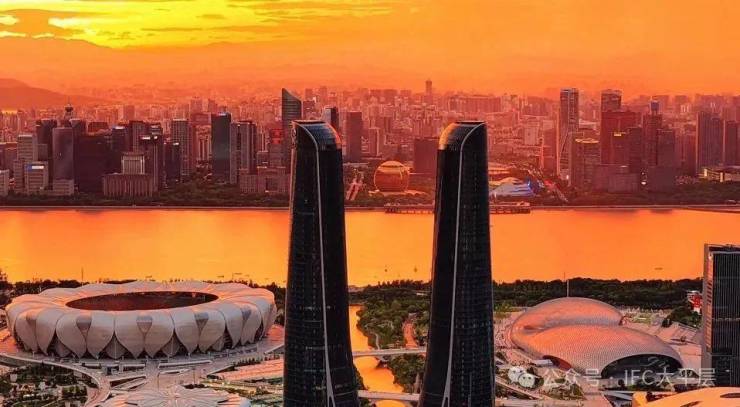 310米双子塔以杭州拼音首字母“H”造型构筑城市封面,系杭州第一高楼,融合江南园林拱门意象