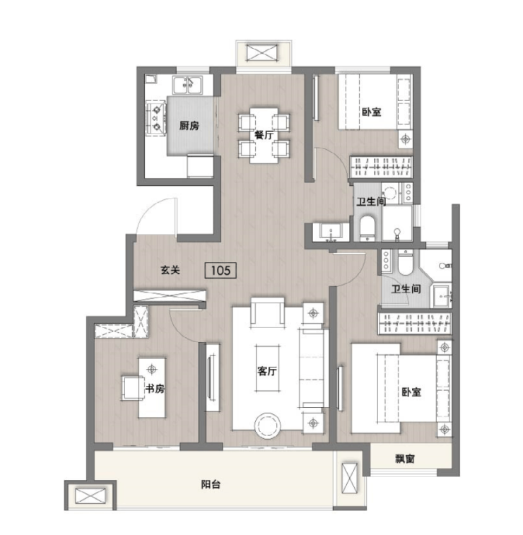 一体式联动餐客厅,享大尺度揽景飘窗,通透自然;