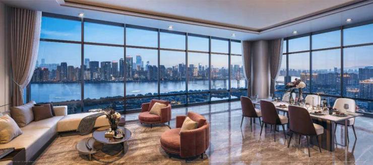 ·全景落地窗:大面积设计全景落地玻璃窗,私揽江域视界