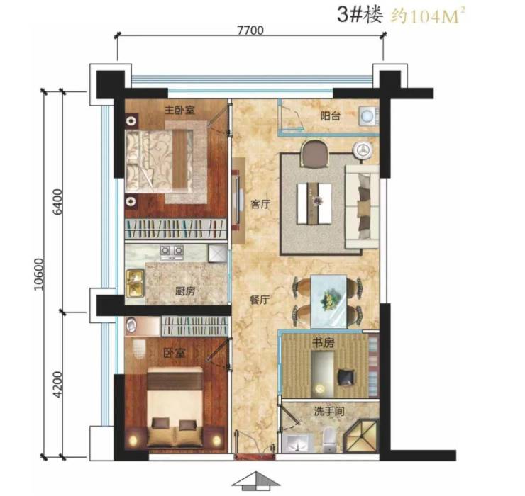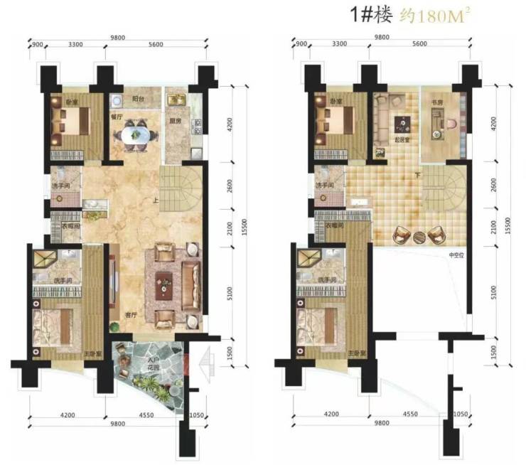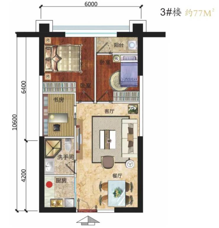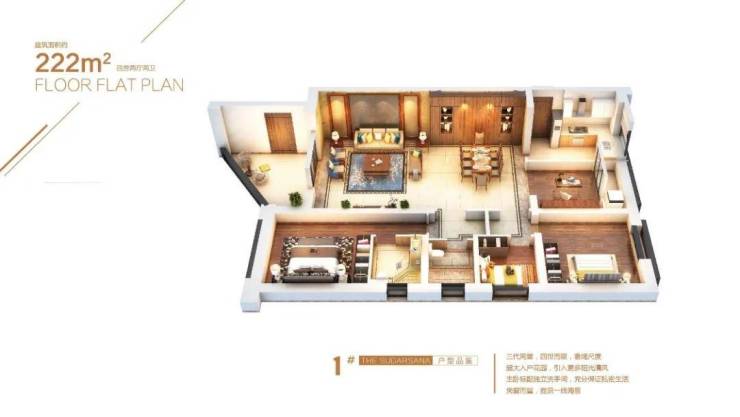 建面约77-220㎡灵动空间挑高3.6米或5米根据需求,可设计为大三房、四房至五房。