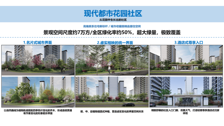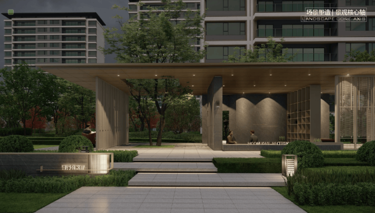 约8000㎡核心景观轴、约2400㎡两个尊享庭院、南北各区设共享花园和私享花园。